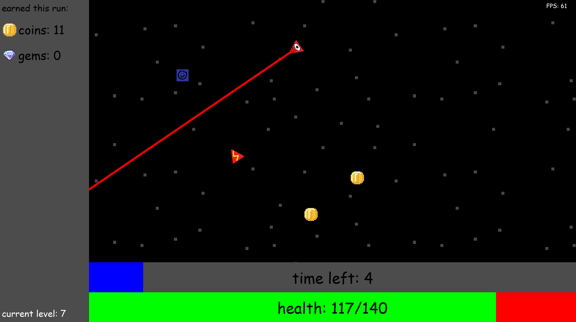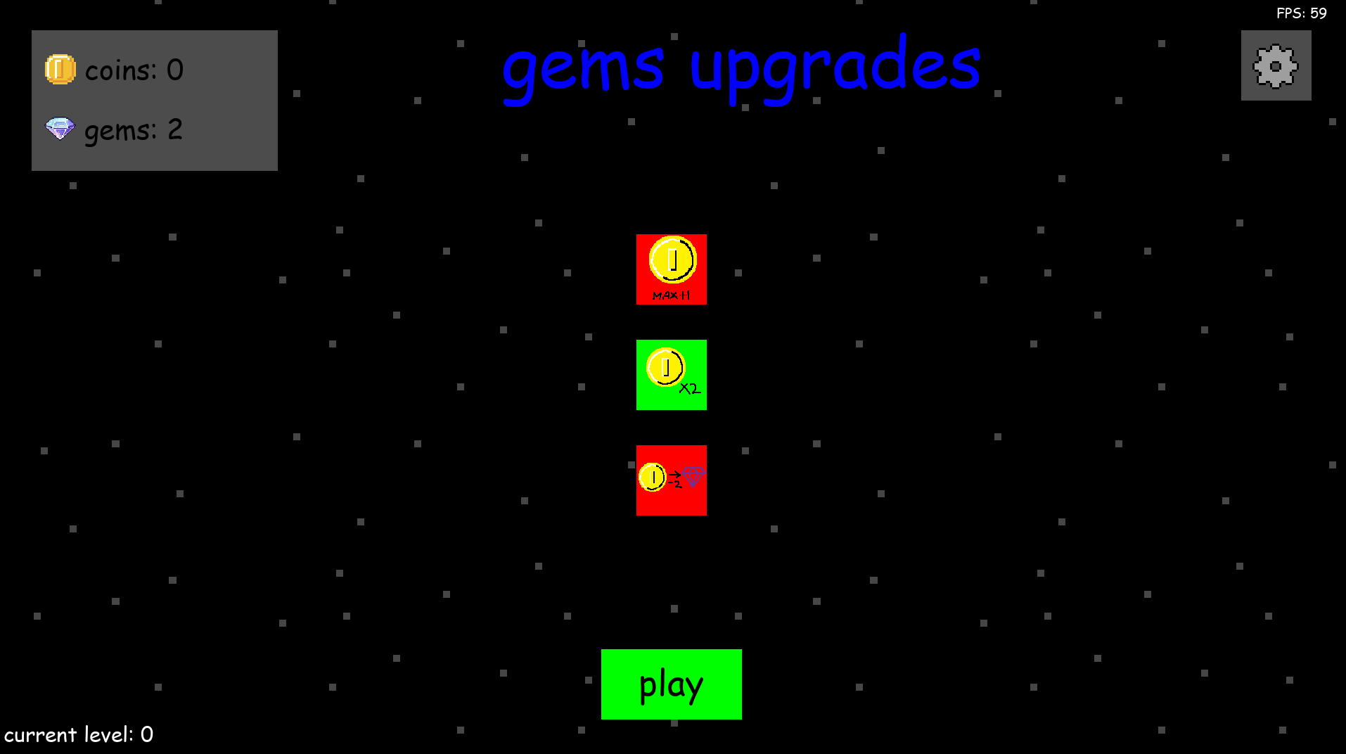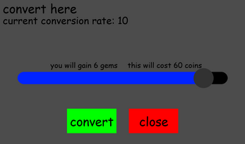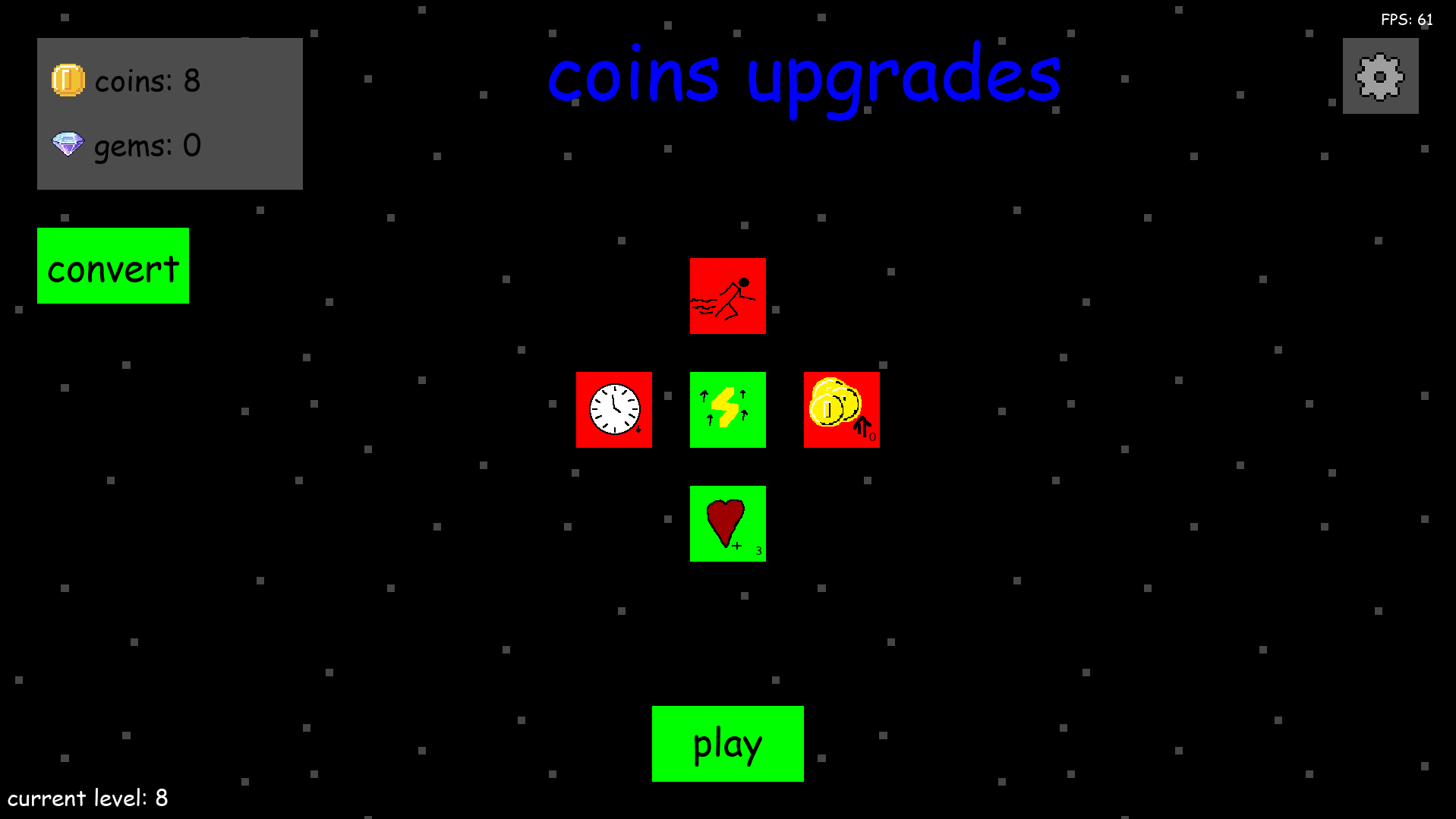spend these coins on upgrades to help progress further, or convert them into gems to buy new upgrades once you die and start a new run.